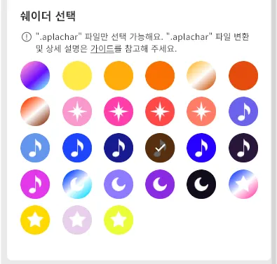 *아바타 파일은 .aplachar 파일로의 변환 목적 외 이용되지 않습니다.