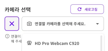 ➌ 카메라 연결이 원활하지 않은 경우 새로고침 버튼을 누르고 다시 선택해 주세요.