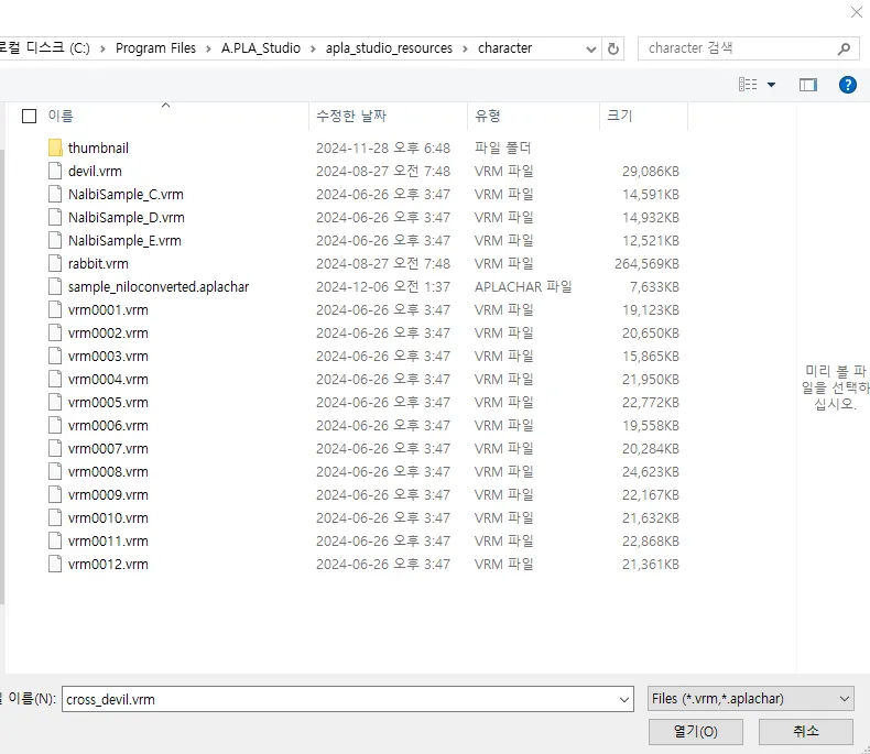 *.VRM, .aplacharファイルを支援します。