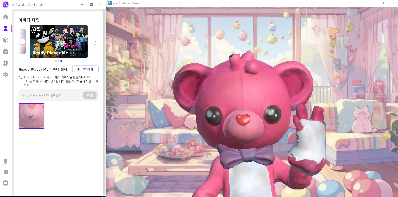 ➐ A.PLA Studio Editorにアバターが正常に登録されました。Viewerから登録したアバターをご利用ください。