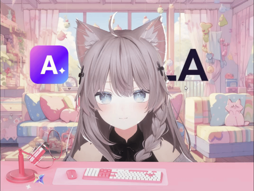 ➏ A.PLA Studio Viewerでは緑色の背景が見えますが、OBS送出画面では透明適用が完了しました!