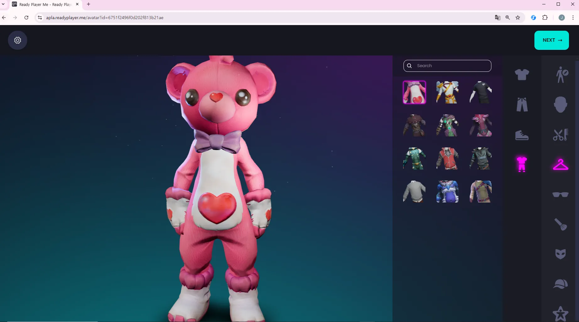 ➍ Change the avatar's outfit. Once you have selected all the outfits you want to change, click the "NEXT" button at the top right.