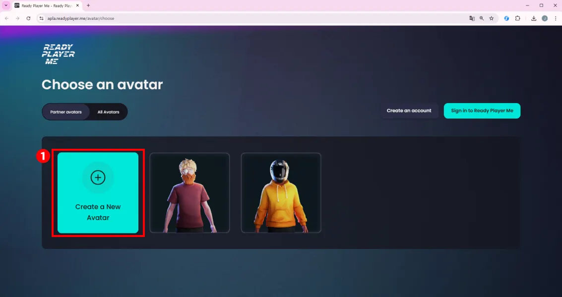 ➌ If you are redirected to the Ready Player Me website, click on "Create a New Avatar.”