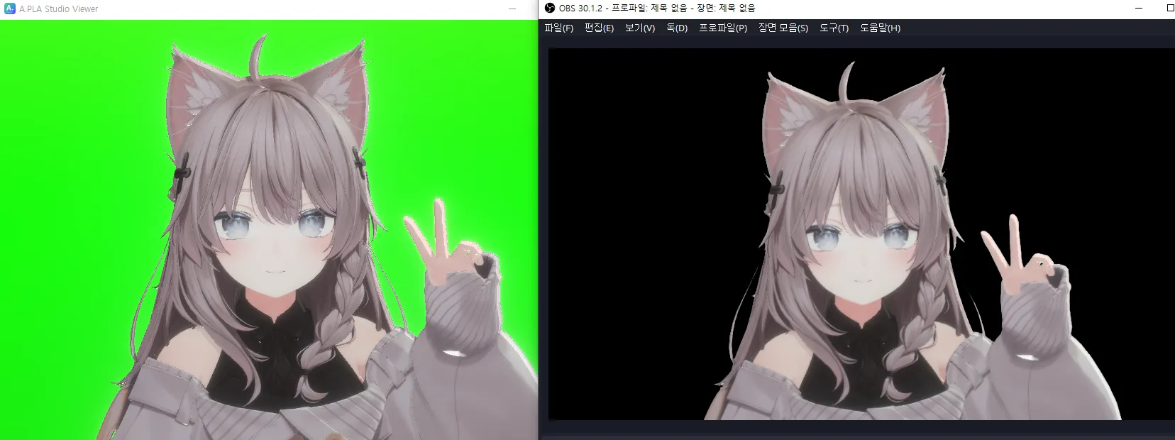 ➏ The green background will be visible in the A.PLA Studio Viewer, but the transparency will be applied successfully on the OBS broadcast screen!
