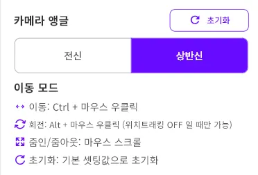 ➊ We provide full-body and upper-body modes with camera angles. Choose the camera angle depending on your broadcast.
