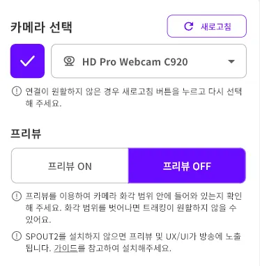 ➋ Once the camera selection and connection are complete, the preview will be activated.
