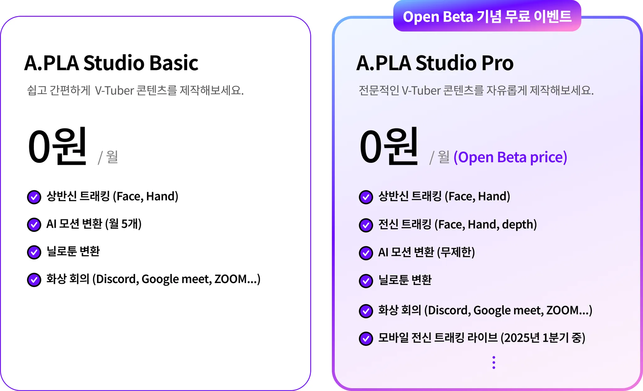A.PLA Studio Pro 모델은 앞으로 더 쉽고 편안한 환경에서 자유롭게 콘텐츠를 제작할 수 있도록 다양한 기능을 추가 업데이트할 예정이에요! 필요한 기능이 있다면 언제든지 말씀 주세요!